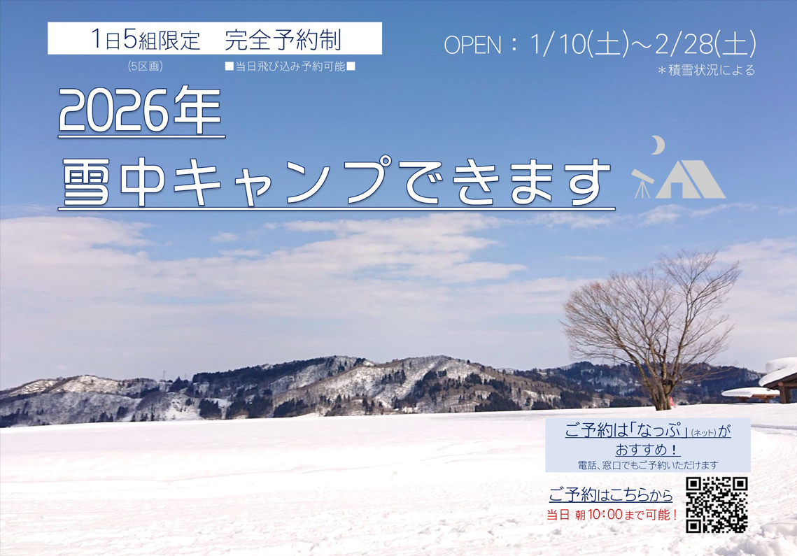 1/10(土)~ついに雪中キャンプサイトをオープンします!