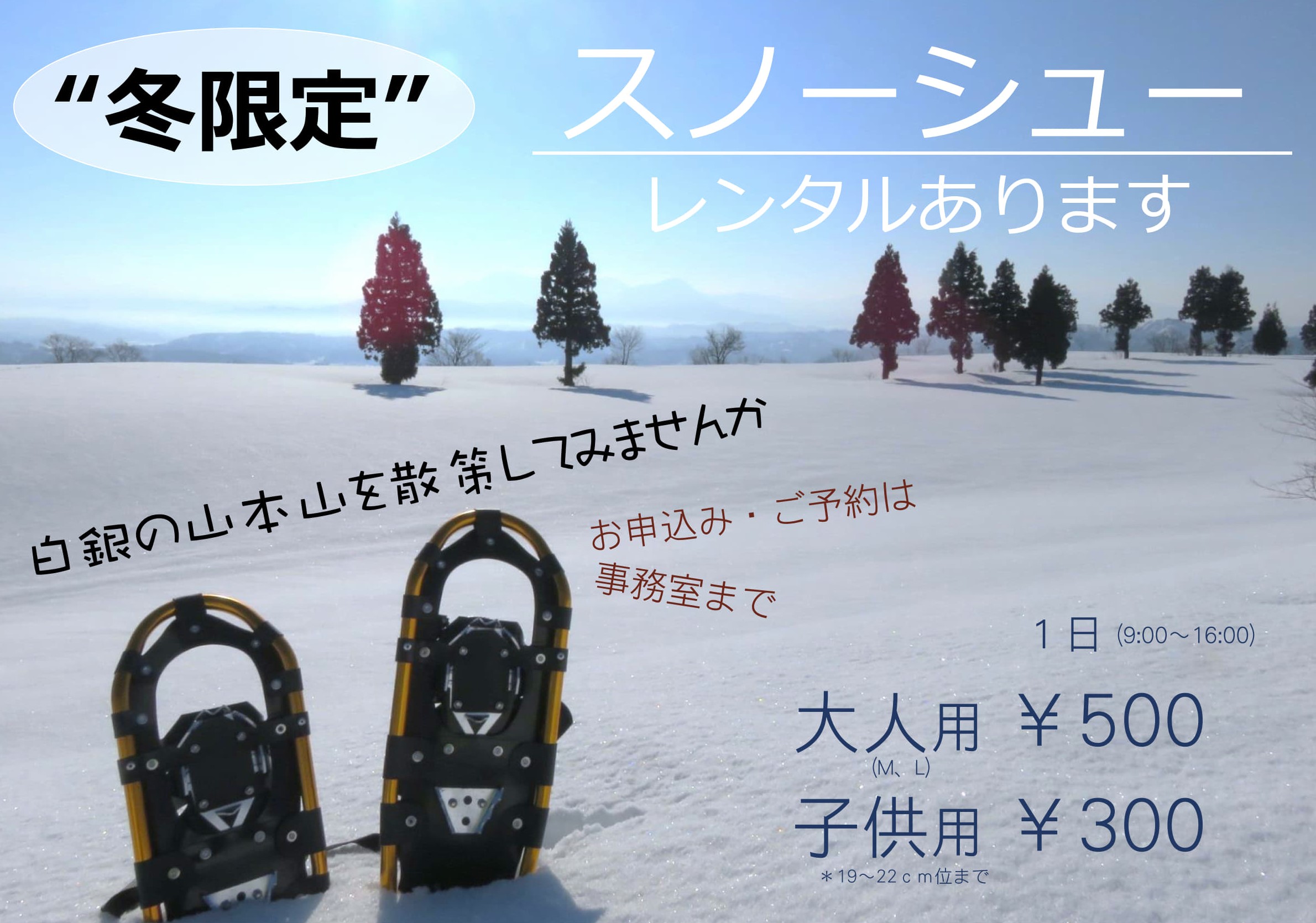 おぢゃ~るから山本山山頂付近まで十分な積雪となりましたので、『スノーシュー』のレンタルを開始しました。