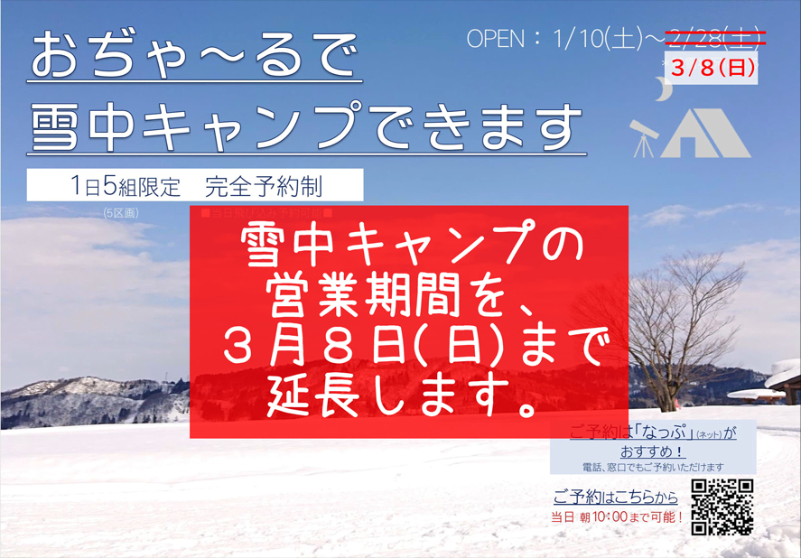 1/10(土)~ついに雪中キャンプサイトをオープンします!
